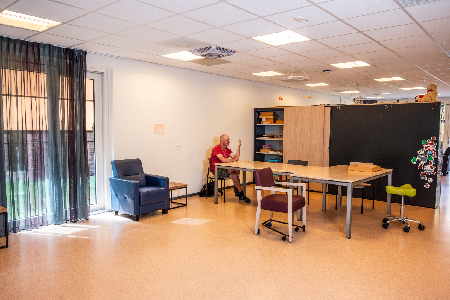 Op deze locatie volg je belevings- en ontwikkelingsgerichte activiteiten in een vast dagprogramma die we jou speciaal aanbieden. Deze activiteiten vinden zowel binnen als buiten de dagbestedingsruimte plaats. Denk hierbij aan bewegen in de fysio-ruimte, muziek maken en luisteren, snoezelen en wandelen. In onze tuin hebben we een schommel, grasveld en trampoline, dus kan ook lekker naar buiten toe. Ook zijn we lekker creatief bezig, koken we samen en doen we andere spelactiviteiten.