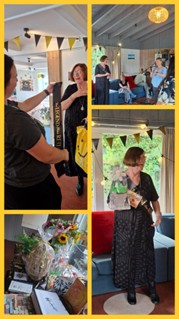 Collega's van haar locaties hebben zich enorm ingezet om een prachtig feestje te organiseren. Ze werd verwend en verrast met mooie woorden, cadeaus, optredens en een zelfgemaakt lied.