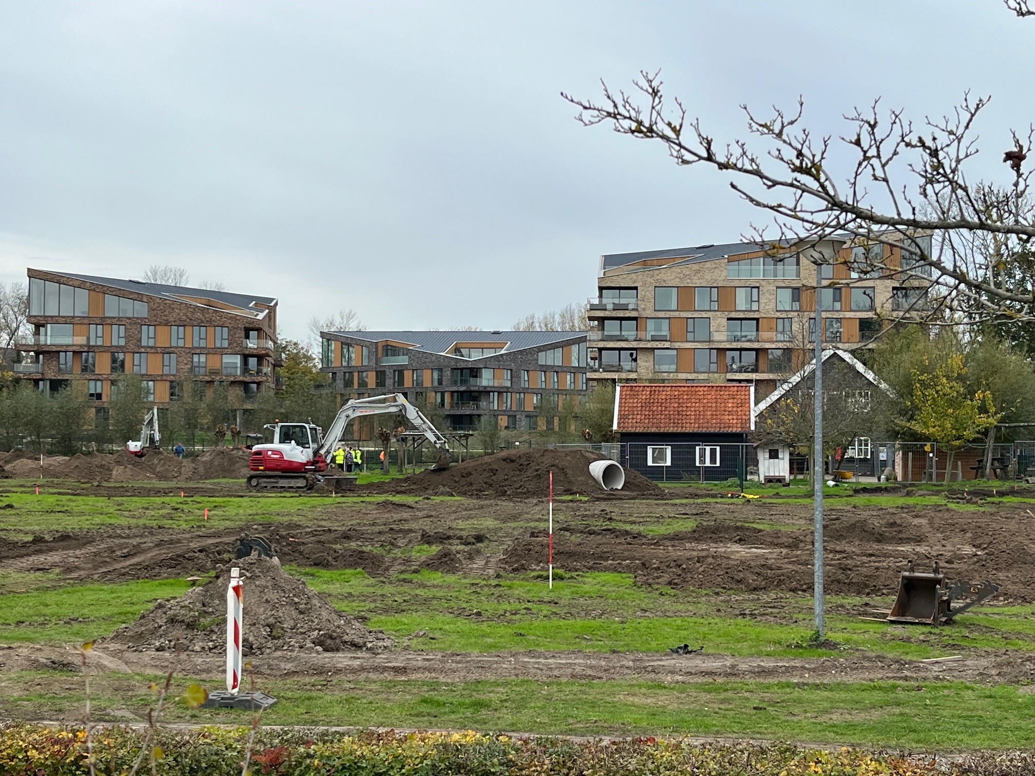 Niet alleen aan de nieuwbouw aan de Deltaboulevard wordt hard gewerkt, ook de kinderboerderij is flink “op de schop”, en op veel plekken zijn er geulen gegraven voor de nieuwe waterleiding waar ook hard aan wordt gewerkt.