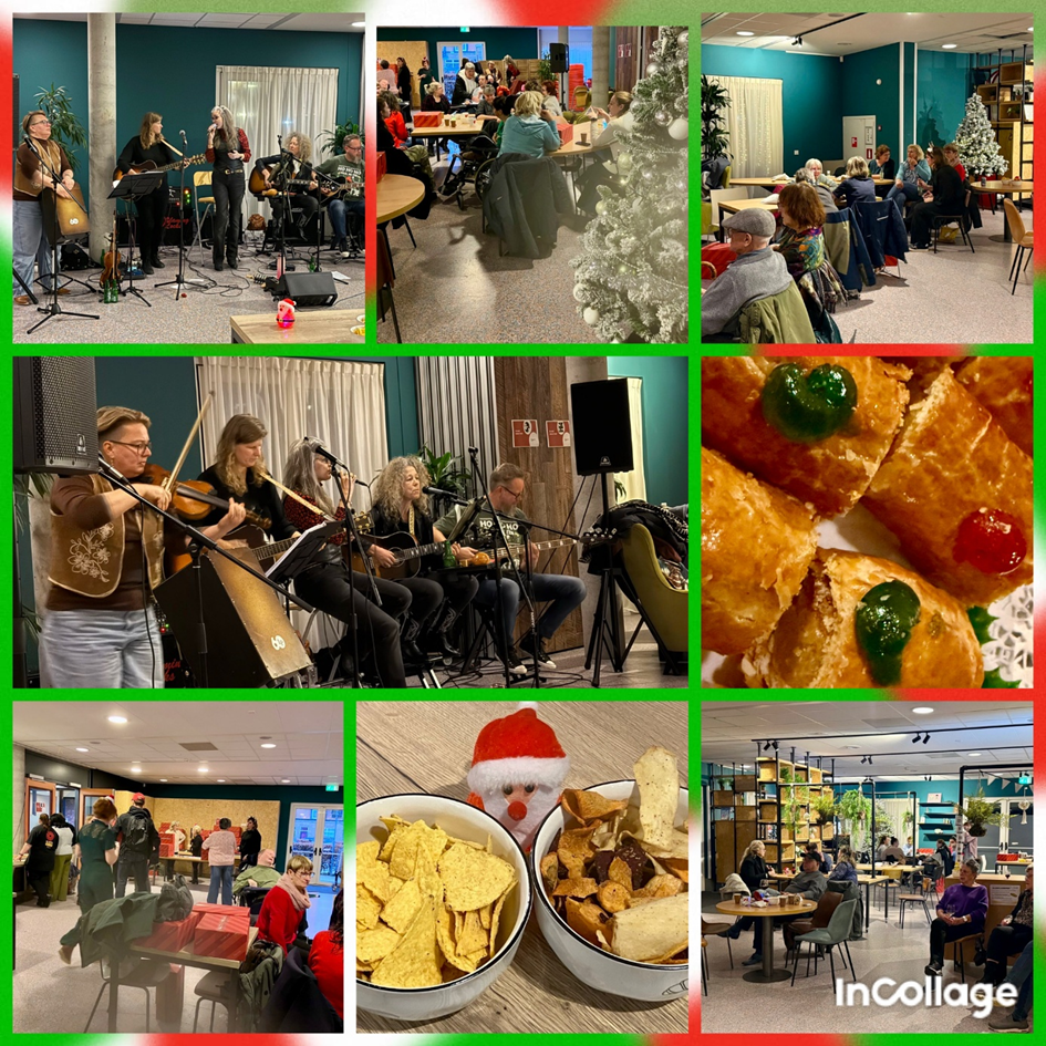 Op dinsdag 9 december werden de kerstpakketten uitgedeeld onder het genot van een heerlijk hapje, drankje en prachtige livemuziek van de band Flaming Locks. Het was een gezellige middag!
